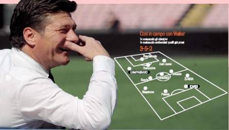 INTER FORMAZIONE MAZZARRI / MILANO – Su carta, nella mente e nei progetti. Walter Mazzarri ha già disegnato la sua Inter, probabilmente da molto più tempo di quanto si possa pensare. Modulo di partenza: 3-5-2. Quello visto e applaudito a Napoli, marchio di fabbrica del tecnico livornese, fedele alle sue idee e sicuro di poter riportare il club nerazzurro sulle alture del calcio italiano, il prima possibile. Glielo chiederà la piazza, glielo avrà già chiesto Massimo Moratti: il presidente non impazzisce per l’ex azzurro, ma ha ugualmente compreso che senza una svolta caratteriale – ancor prima che tecnica – il suo giocattolo difficilmente potrebbe ricomporsi dopo una stagione, anzi due, al limite del ridicolo.