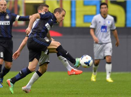 Mazzarri ha confermato in blocco l’undici vittorioso in quel di Verona. Colantuono, invece, ha sostituito lo squalificato Benalouane col giovane rumeno Nica, titolare per la prima volta in campionato: Moralez in appoggio a Denis, che in carriera ha perforato la porta della Beneamata già sette volte. All’inizio la partita si è svolta prettamente sulla corsia di D’Ambrosio che, approfittando della assenza di Nagatomo, aveva e avrà il compito di convincere Mazzarri a puntare su di lui anche in futuro. Le prime magie sono nate dal cilindro di Hernanes, vero catalizzatore e ispiratore del gioco nerazzurro, davanti al quale ha risposto un avversario di tutto rispetto, che ha manovrato veloce per orizzontale e verticale.