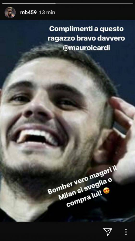 INTER BALOTELLI ICARDI MILAN / Attraverso il proprio profilo Instagram (vedi foto in basso, ndr) Mario Balotelli ha elogiato Mauro Icardi ‘consigliandolo’ al Milan: “Complimenti a questo ragazzo, davvero bravo. Bomber vero, magari il Milan si sveglia e compra lui
