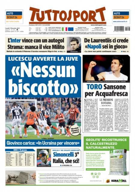 TUTTOSPORT / TORINO – Questi i titoli dedicati all’Inter dal quotidiano torinese: