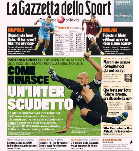 GAZZETTA DELLO SPORT / MILANO – Questi i titoli dedicati all’Inter dal quotidiano milanese: