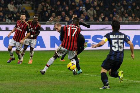 DIRETTA LIVE SERIE A, MILAN-INTER / MILANO – E’ il giorno del derby di Milano. Il posticipo domenicale della 36esima e terz’ultima giornata del campionato di Serie A mette di fronte allo stadio ‘Meazza’ Milan ed Inter in uno scontro diretto per un posto nella prossima Europa League. La formazione di Mazzarri può vantare 6 punti di vantaggio rispetto a quella di Seedorf oltre che sul risultato dell’andata, quando a decidere il match fu un colpo di tacco di Palacio.