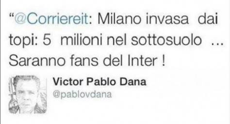 FOTO TWITTER DANA MR BEE TIFOSI INTER / MILANO – Sin dal suo arrivo a Milano, Erick Thohir ha impressionato per la sua educazione ed il suo stile. Il presidente dell’Inter non si è mai lasciato andare agli sfottò né ha mai risposto alle provocazioni dei colleghi Agnelli e Ferrero. Un comportamento che pare intenzionato a tenere anche Mr Bee Taechaubol, futuro patron del Milan, che ha praticamente fatto fuori il suo collaboratore Victor Pablo Dana, reo di aver definito ‘topi’ i tifosi dell’Inter con un tweet poi cancellato – potete leggerlo qui sopra – e poi rimpiazzato con questi altri due: “Ho tolto il Tweet ma dopo 610 tweet di insulti dai fans del Inter credo sia arrivato il momento di smetterla e lasciare gli addetti lavorare. Il Milan va rispettato! Fin dall’inizio voi interisti vi siete nascosti dietro falsi account per fare del male. Ride bene chi ride ultimo”. Mr Bee, sempre tramite il proprio profilo Twitter, ha preso posizione in questo modo: “Mi scuso con i tifosi nerazzurri. Le parole di Dana non sono mie. Lui non è e non sarà mai parte del Milan. Calcio è sportività e rispetto. Quello che è successo è un grave errore e non lo tollereremo mai”.