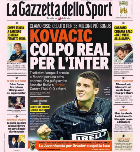 GAZZETTA DELLO SPORT / MILANO – Questi i titoli dedicati all’Inter dal quotidiano milanese:
