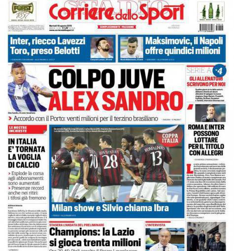 CORRIERE DELLO SPORT / ROMA – Questi i titoli dedicati all’Inter dal quotidiano romano: