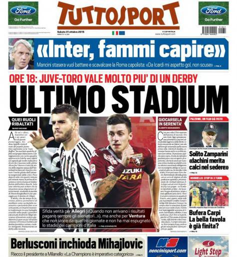 TUTTOSPORT / TORINO – Questi i titoli dedicati all’Inter dal quotidiano torinese: