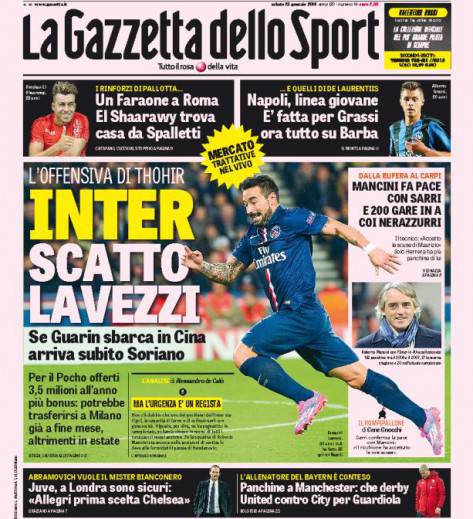E’ in pole per Lavezzi. Guarin-Cina si scalda e Soriano è più vicino