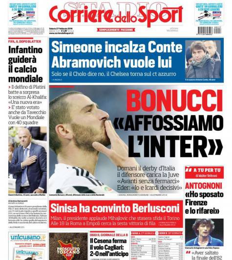 CORRIERE DELLO SPORT / ROMA – Questi i titoli dedicati all’Inter dal quotidiano romano: