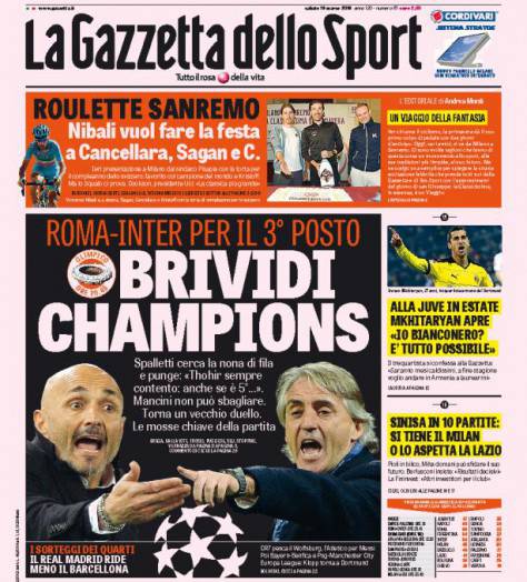 La Roma è lanciatissima. Spalletti punge Mancini. L’Inter può solo vincere. Torna un duello antico