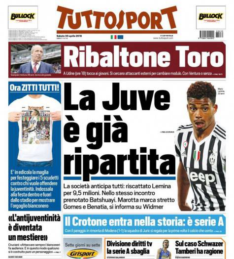 TUTTOSPORT / TORINO – Questi i titoli dedicati all’Inter dal quotidiano torinese:
