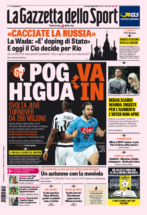 GAZZETTA DELLO SPORT / MILANO – Questi i titoli dedicati all’Inter dal quotidiano milanese: