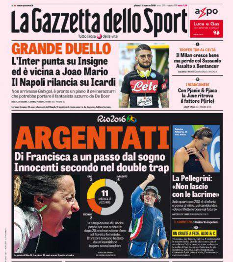 GAZZETTA DELLO SPORT / MILANO – Questi i titoli dedicati all’Inter dal quotidiano milanese: