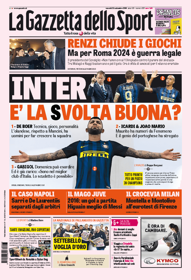 GAZZETTA DELLO SPORT / MILANO – Questi i titoli dedicati all’Inter dal quotidiano milanese: