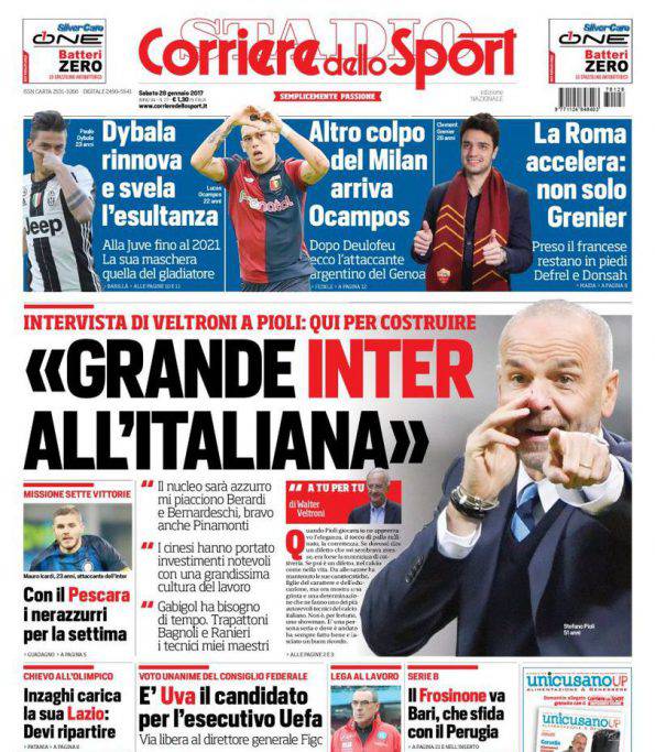 CORRIERE DELLO SPORT / Questi i titoli dedicati all’Inter dal quotidiano romano: