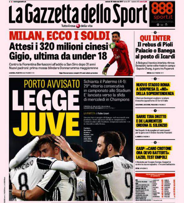 GAZZETTA DELLO SPORT / Questi i titoli dedicati all’Inter dal quotidiano milanese:
