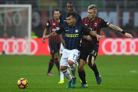 DIRETTA INTER MILAN LIVE / Il lunch match che apre la 32esima giornata del campionato di Serie A, tredicesimo turno del girone di ritorno, è il derby della Madonnina tra Inter e Milan. Una partita che, oltre a stabilire il ‘dominio’ cittadino, è molto importante per la classifica nella corsa ad un posto in Europa League. La squadra di Pioli vuole interrompere la striscia di due sconfitte consecutive ed operare il controsorpasso sui ‘cugini’ rossoneri, mentre quella di Montella vuole allungare sui nerazzurri e raggiungere almeno momentaneamente la Lazio al quarto posto. All’andata finì in parità 2-2. Interlive.it, in collaborazione con direttagoal.it, vi offre il match di ‘San Siro’ in tempo reale.