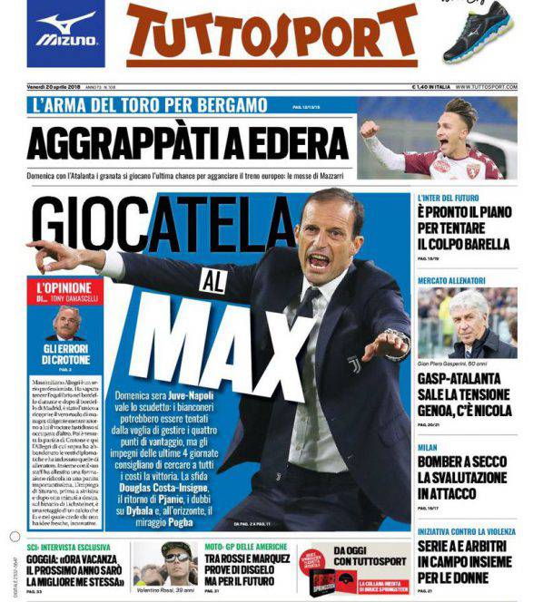 TUTTOSPORT – Questi i titoli dedicati all’Inter dal quotidiano sportivo torinese: