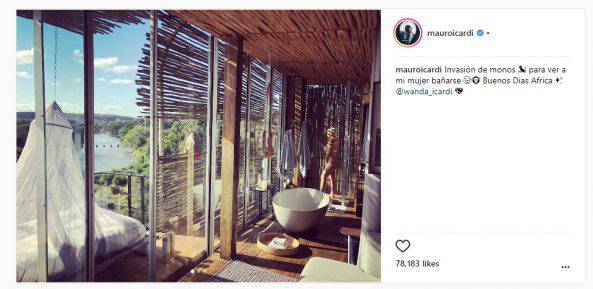 INSTAGRAM WANDA NARA ICARDI DOCCIA – Mauro Icardi si gode le vacanze in Africa insieme alla moglie Wanda Nara. E come spesso accade, la coppia argentina rende pubblici i propri spostamenti con tante foto postate sui rispettivi profili social, in particolare su Instagram. Ma l’ultimo scatto immortalato dal centravanti e capitano dell’Inter ha fatto registrare un vero e proprio boom di Like da parte dei follower. Nell’immagine si vede in lontananza la bella showgirl argentina che fa la doccia nuda per rinfrescarsi dal caldo africano. Una fotografia che lo stesso Icardi ha accompagnato con la scritta: “Invasione di scimmie per venire a vedere mia moglie mentre si fa la doccia“. Ed il web impazzisce!