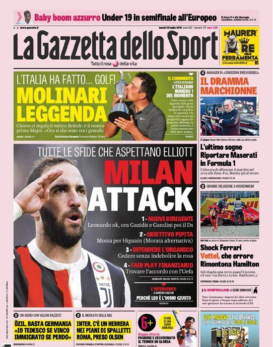 GAZZETTA DELLO SPORT – Questi i titoli dedicati all’Inter dal quotidiano sportivo milanese: