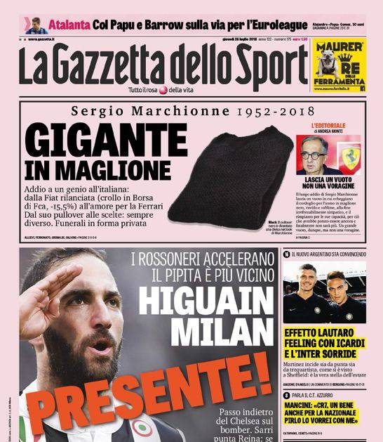 GAZZETTA DELLO SPORT – Questi i titoli dedicati all’Inter dal quotidiano sportivo milanese: