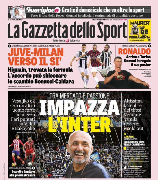 GAZZETTA DELLO SPORT – Questi i titoli dedicati all’Inter dal quotidiano sportivo milanese: