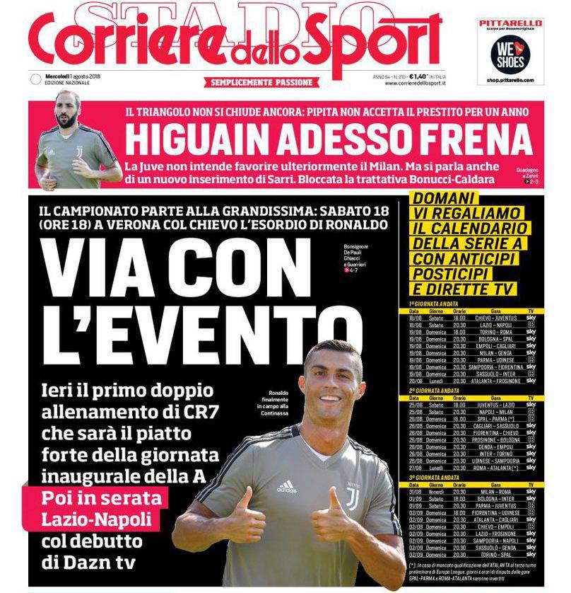 CORRIERE DELLO SPORT – Questi i titoli dedicati all’Inter dal quotidiano sportivo romano: