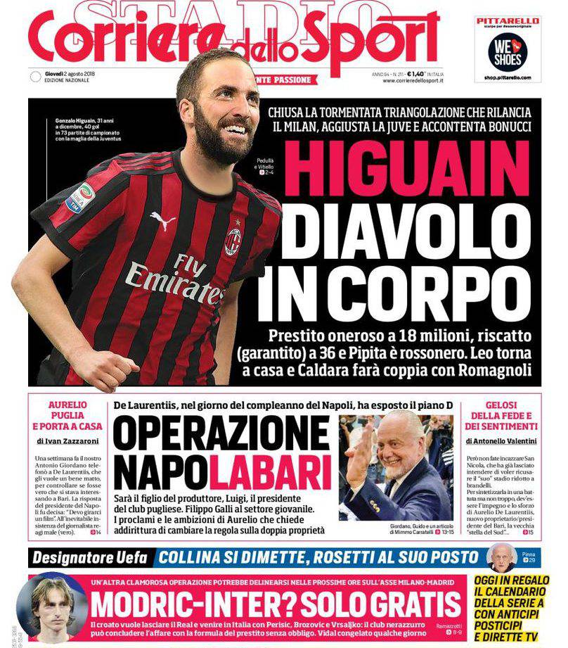 CORRIERE DELLO SPORT – Questi i titoli dedicati all’Inter dal quotidiano sportivo romano: