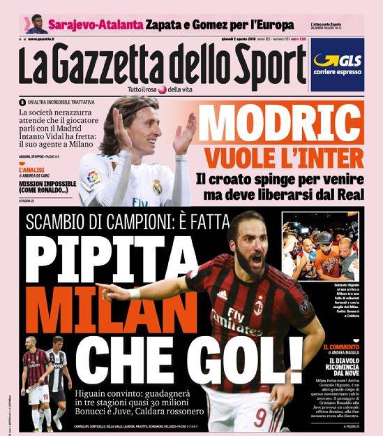 GAZZETTA DELLO SPORT – Questi i titoli dedicati all’Inter dal quotidiano sportivo milanese: