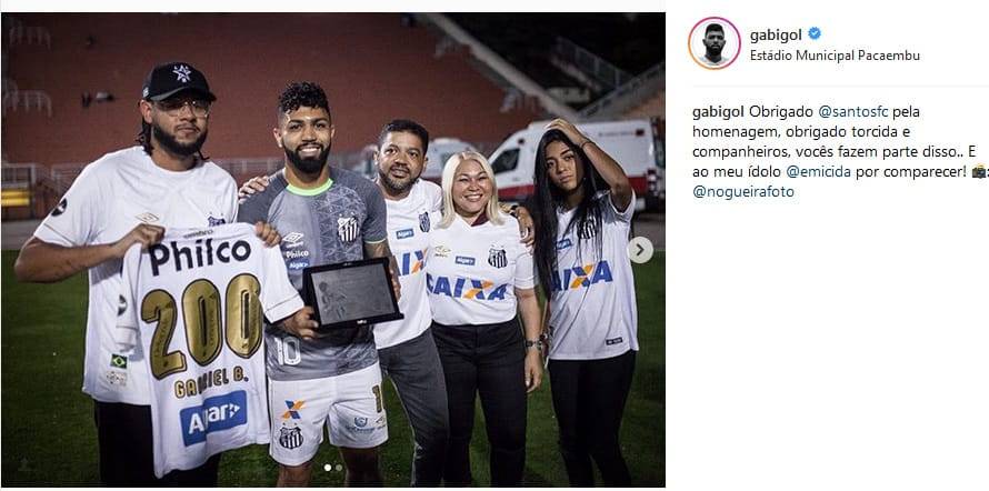 INSTAGRAM GABIGOL SANTOS CASTAN – Raggiungere il traguardo delle 200 presenze con la stessa maglia non è semplice quando hai solo 22 anni. Ma Gabigol ci è riuscito grazie al fatto che, nonostante le parentesi europee con le maglie di Inter e Benfica, ha iniziato a giocare con la prima squadra del Santos quando non era ancora maggiorenne. L’attaccante brasiliano ha raggiunto l’obiettivo nel match contro il Cruzeiro in cui è andato in gol senza però riuscire ad evitare la sconfitta. Prima della successiva gara interna con il Vasco da Gama, Gabriel Barbosa è stato premiato con una maglia e una targa dal club bianconero. L’ex interista ha poi postato la foto sul suo profilo Instagram con un messaggio: “Grazie Santos per il premio. Grazie ai tifosi e ai compagni, voi ne fate parte”.