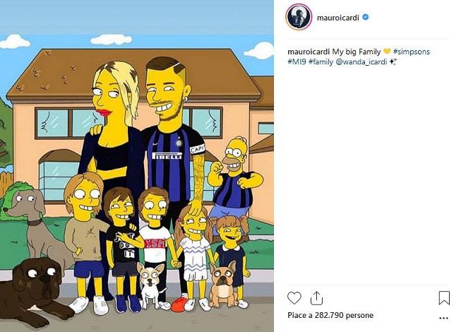 Mauro Icardi si diverte su Instagram. L’attaccante dell’Inter, con Wanda Nara e la famiglia, diventano personaggi dei Simpson