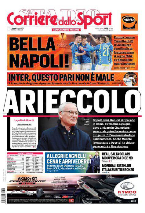 Rassegna stampa: i titoli sull’Inter del ‘Corriere dello Sport’ di oggi, venerdì 8 marzo 2019.