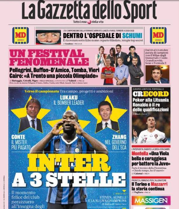 GAZZETTA DELLO SPORT – Questi i titoli dedicati all’Inter dal quotidiano sportivo milanese:
