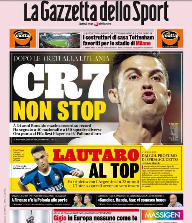 GAZZETTA DELLO SPORT – Questi i titoli dedicati all’Inter dal quotidiano sportivo milanese: