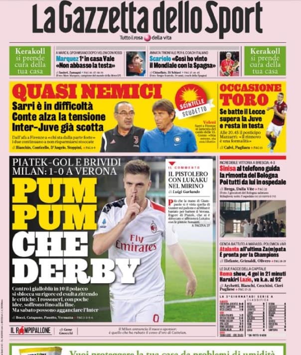 GAZZETTA DELLO SPORT – Questi i titoli dedicati all’Inter dal quotidiano sportivo milanese: