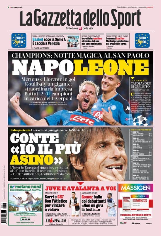 GAZZETTA DELLO SPORT – Questi i titoli dedicati all’Inter dal quotidiano sportivo milanese: