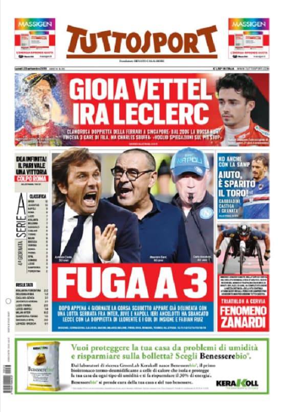TUTTOSPORT – Questi i titoli dedicati all’Inter dal quotidiano sportivo torinese: