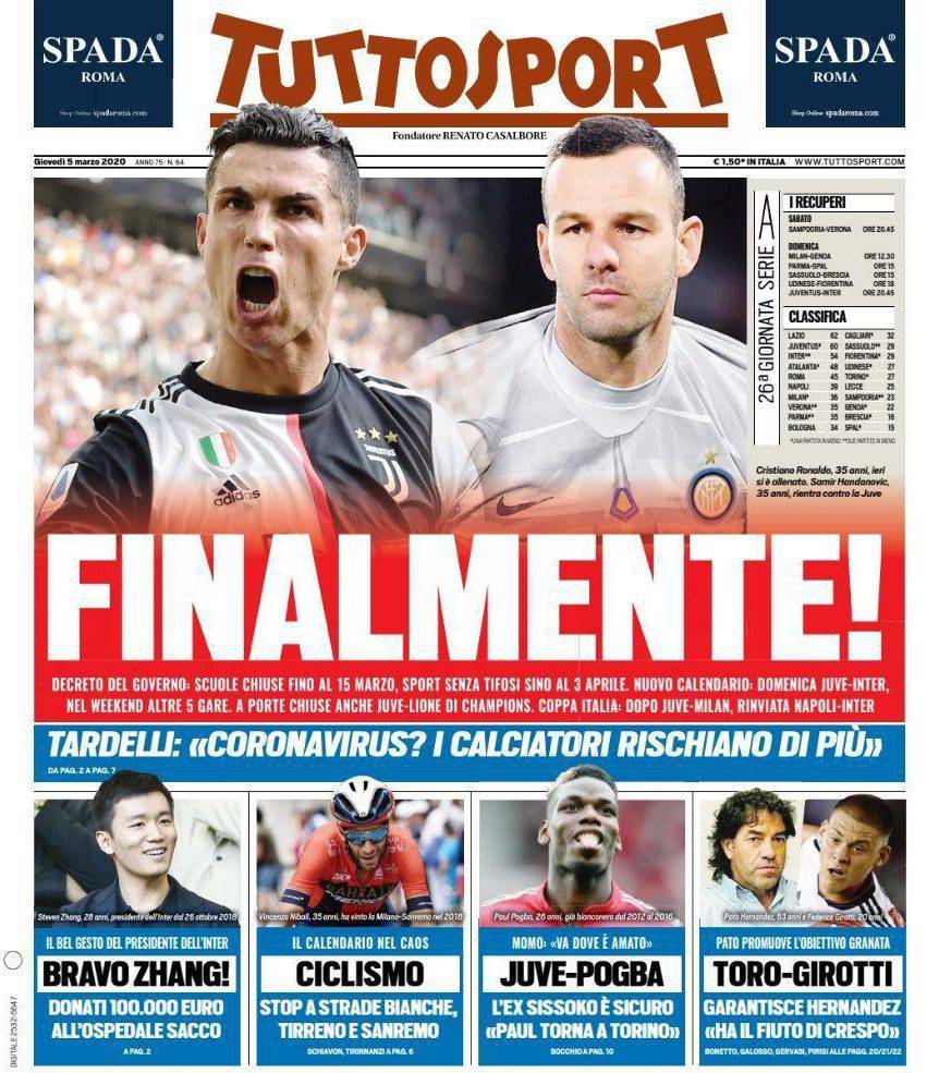 TUTTOSPORT – Questi i titoli dedicati all’Inter dal quotidiano sportivo torinese: