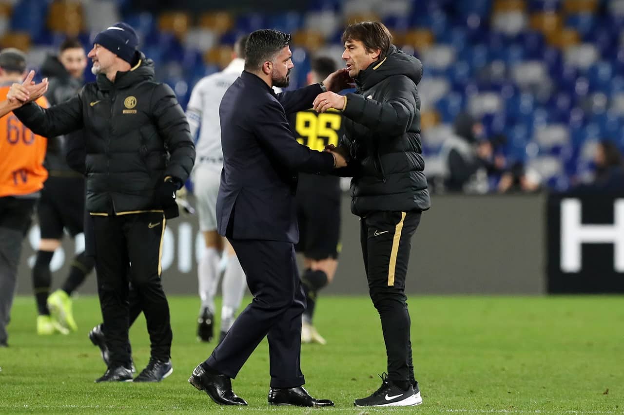 L’Inter fa visita al Napoli nella sfida di ritorno valida per le semifinali di Coppa Italia. che si disputerà a porte chiuse. Da una parte i nerazzurri di Conte hanno bisogno di un successo, anche di misura se dovessero segnare almeno due gol, per raggiungere la finale. Dall’altro ai partenopei di Gattuso può bastare un pareggio dopo l’1-0 dell’andata. Chi passa il turno mercoledì affronterà la Juventus che ieri ha eliminato il Milan. Interlive.it vi offre il match del San Paolo in tempo reale.