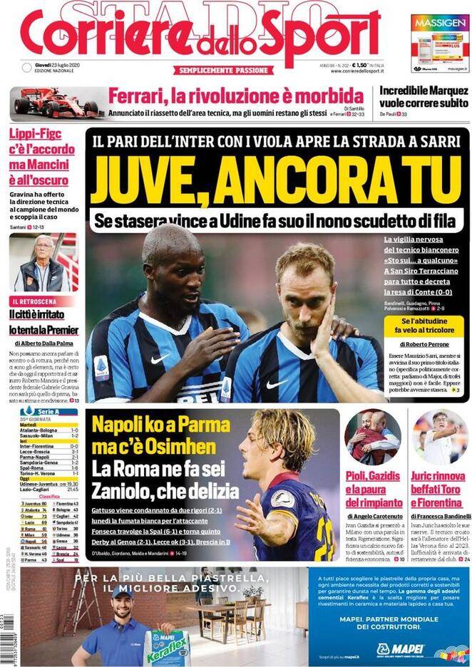CORRIERE DELLO SPORT – Questi i titoli dedicati all’Inter dal quotidiano romano: