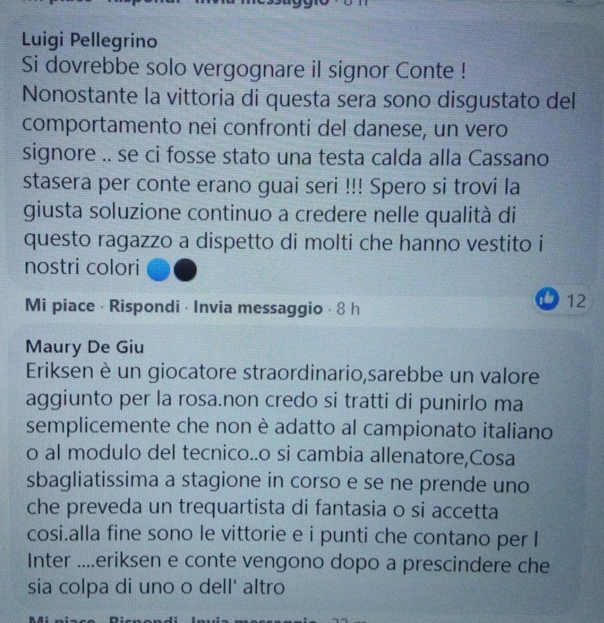 Anche sulla nostra pagina Facebook, molti utenti non hanno apprezzato l’utilizzo di Eriksen che, come detto, sembra essere ormai arrivato al bivio in nerazzurro: