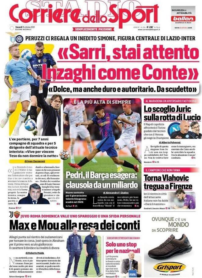 CORRIERE DELLO SPORT / Questi i titoli dedicati all’Inter dal quotidiano romano: