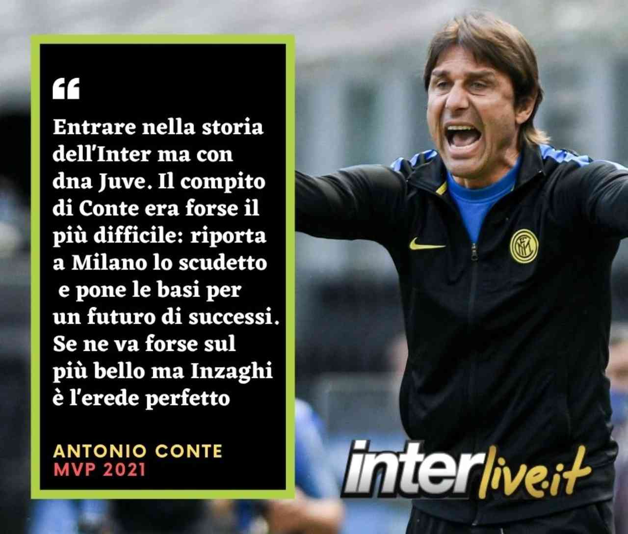 Conte MVP dell’anno con questa motivazione: “Entrare nella storia dell’Inter ma con DNA Juve. Il compito di Conte era forse il più difficile: riporta a Milano lo scudetto e pone le basi per un futuro di successi. Se ne va forse sul più bello ma Inzaghi è l’erede perfetto”.