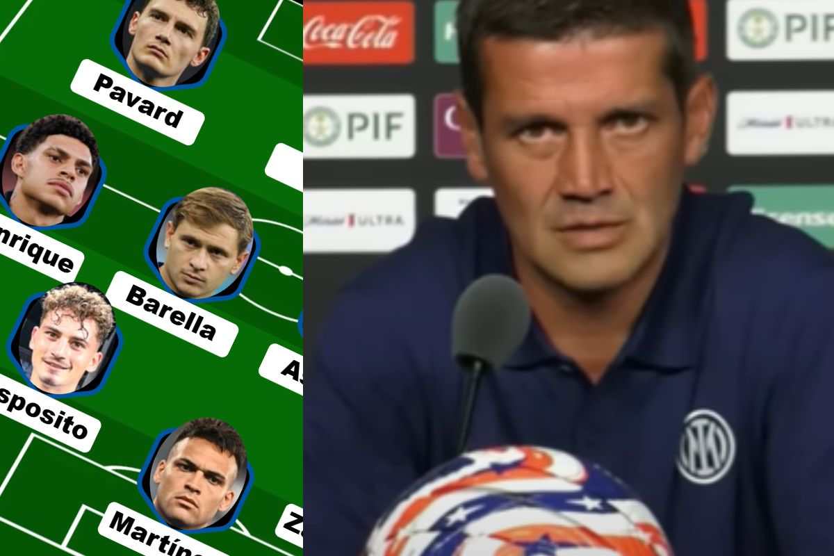 Inter (3-4-2-1): Sommer; Pavard, de Vrij, Bastoni; Luis Enrique, Barella, Asllani, Dimarco; Zalewski, Esposito S.; Lautaro. All. Chivu
